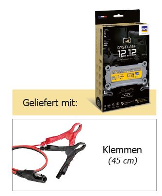Lädt 12V-Batterien von PKWs, Nutzfahrzeugen, LKWs und Reisebussen.