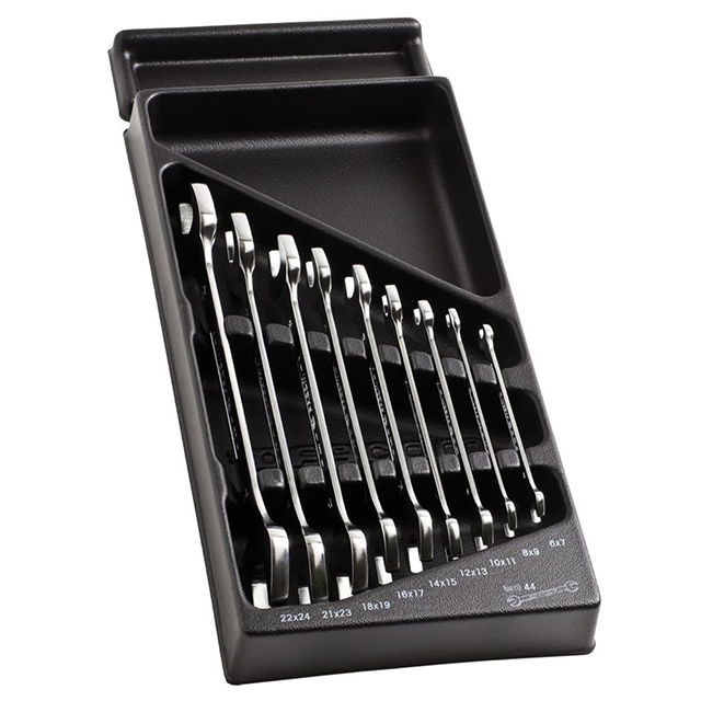 Modul für z.B. Werkzeugwagen Werkzeuge wie abgebildet • 55A. 6 x 7 – 8 x 9 – 10 x 11 – 12 x 13 – 14 x 15 – 16 x 17 – 18 x 19 mm • Einlage: PL.317A mit Kunststoffeinlage