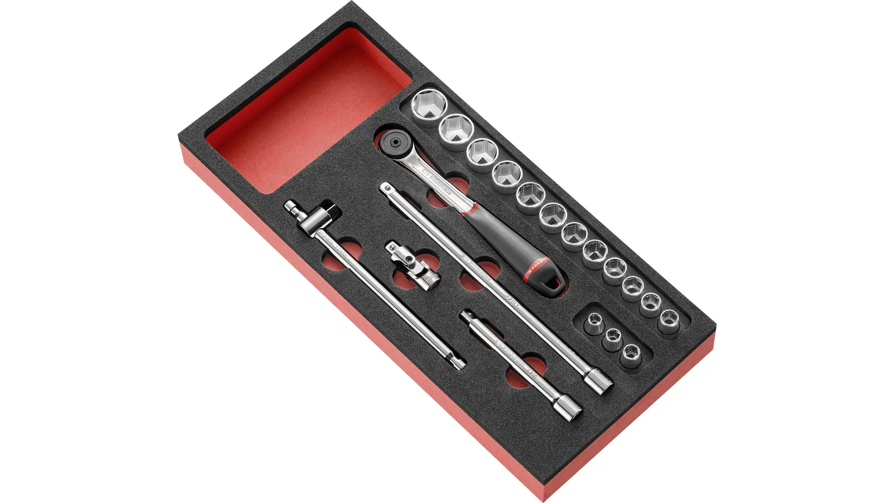 Modul mit 3/8” Steckschlüsseln 6-Kant – 20-tlg.in Schaumstoffeinlage